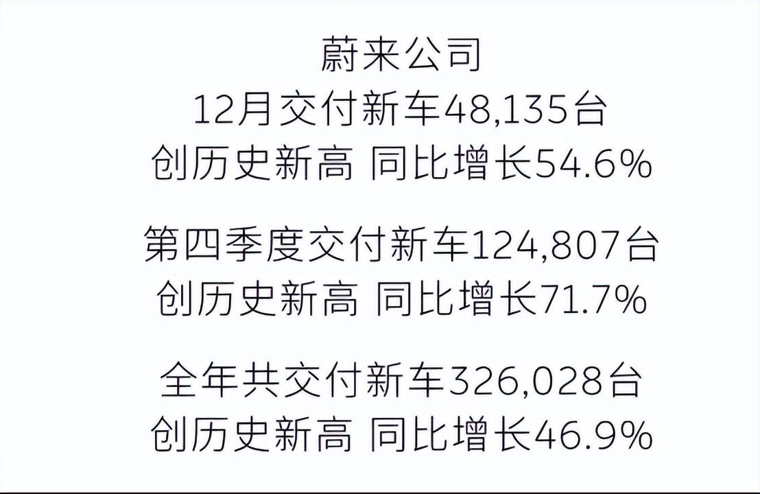 2025年12月,蔚來汽車的銷量達48135 輛,同比增長54.6%,創下了歷史新高,其全年累計交付326028 輛,同比增長46.9%,同樣創下了歷史新高。