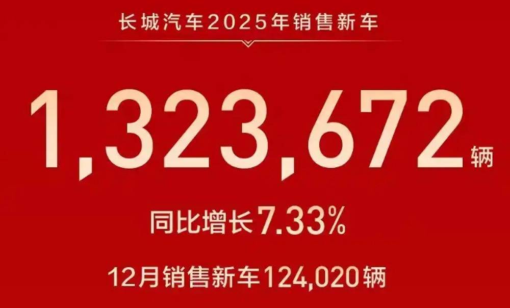 根據(jù)公開的銷售數(shù)據(jù)顯示,長(zhǎng)城汽車2025年12月銷量為124020臺(tái),環(huán)比同比都出現(xiàn)了一定程度的下滑。2025年1-12月累計(jì)銷量達(dá)到1323672臺(tái),同比增長(zhǎng)7.33%,其中,新能源汽車全年總銷量為403653臺(tái),同比增長(zhǎng)25.44%。牢牢守住年銷100萬(wàn)輛俱樂部成員資格,也是不爭(zhēng)的事實(shí)。