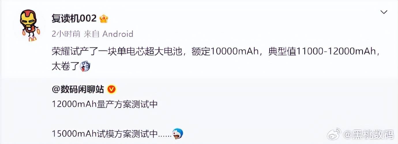 因為此前的消息稱,榮耀已經在測試12000mAh電池。