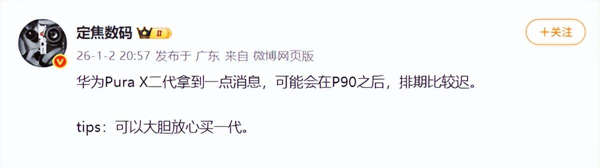 此前有博主表示,Pura X2將延期至第二季度發布,發布時間將晚于Pura 90系列。