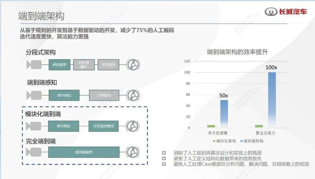 在2024年的電動汽車百人會上,長城汽車旗下自動駕駛算法公司毫末智行CEO顧維灝發表了一個觀點:國內車企向端到端范式的轉變需要經歷幾年的時間。