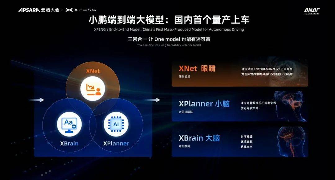 是特指將分段式端到端方案中的大語言模型XBrain、端到端感知大模型XNet、端到端規劃大模型XPlanner合并成一張大網,實現一段式端到端方案。