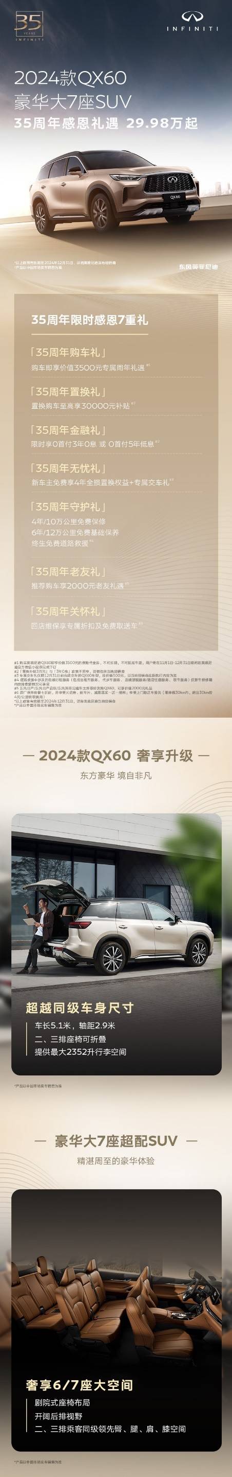 11月15日,2024(第二十二屆)廣州國(guó)際汽車展覽會(huì)盛大開幕,恰逢品牌誕生35周年的英菲尼迪,攜QX60共創(chuàng)概念版首發(fā)亮相,并推出諸多限時(shí)感恩禮遇政策。