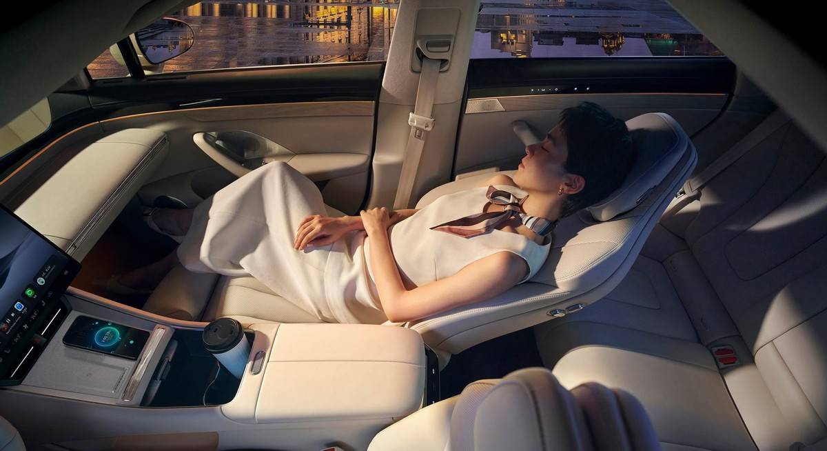 內(nèi)飾部分,智界新S7的內(nèi)飾采用了“大縱深游艇駕艙設(shè)計(jì)”,視覺效果上很有層次感且空間感很足。中控臺(tái)搭載12.3英寸液晶儀表和15.6英寸中控屏,觸手可及處都采用軟皮包裹,觸感細(xì)膩且豪華感十足。座椅功能也更加豐富,配備了女王座椅等高級(jí)配置,用料相當(dāng)扎實(shí)。