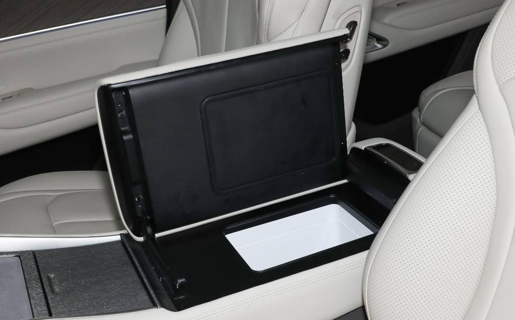在副儀表臺部分,采用了兩塊手機(jī)無線充電板功能。新車支持高階智駕系統(tǒng)。值得一體的是,新車在前扶手箱內(nèi)加入了11.5升容量的車載冰箱功能。