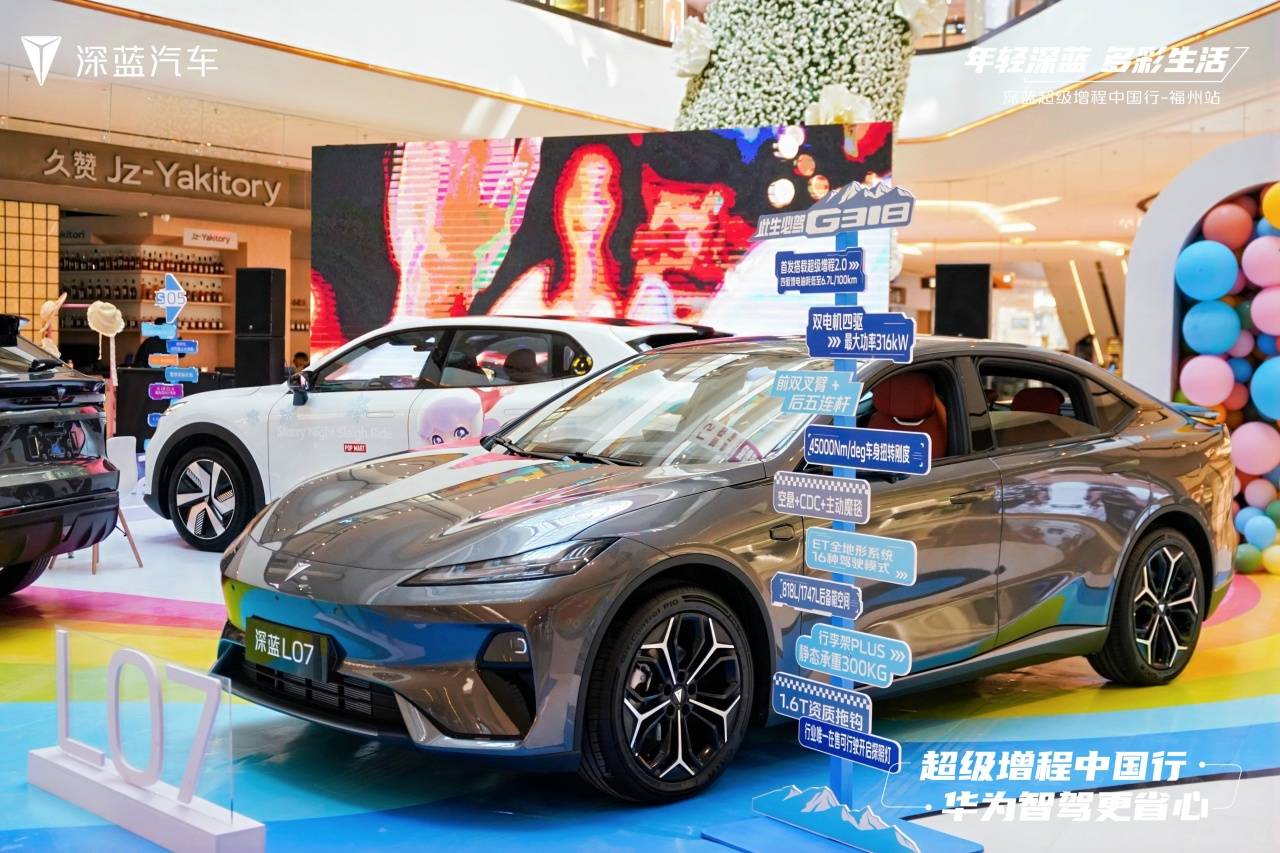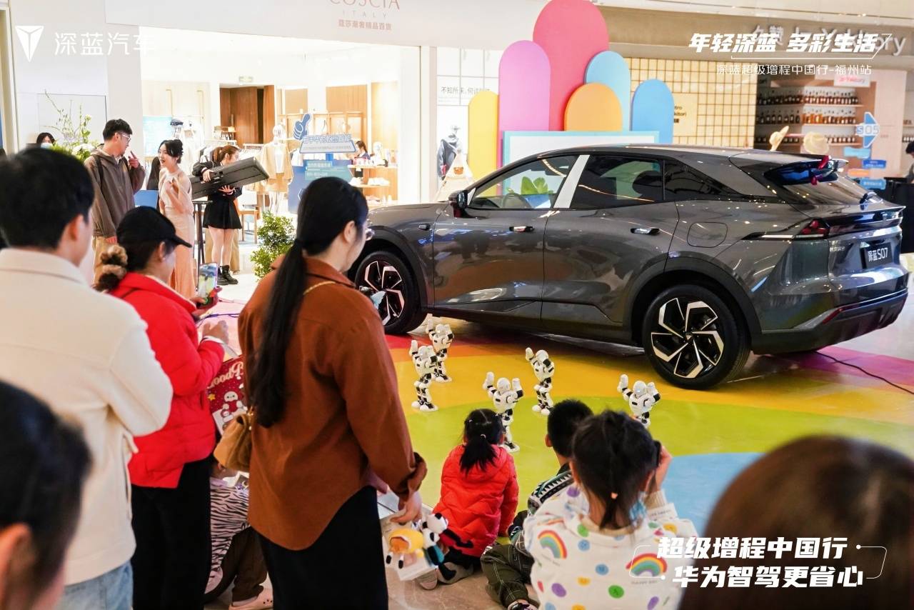 11月29日-12月1日,深藍汽車超級增程中國行福州站活動在福州蘇寧廣場舉行,現場展示了L07、S07、S05三款車型,吸引了眾多市民參與互動及試駕,感受到深藍汽車的“超級增程”+“乾崑智駕”創新科技和產品魅力。