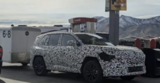 和現款在售車型相比,新車外觀有明顯不同,整個車身線條依然較為硬朗運動,尤其是兩側的車窗線條和輪眉的位置非常明顯,前臉疑似采用全新的L型日行燈,下方還有橫條幅的貫通式前格柵,這大概就是豐田最新的家族語言了。