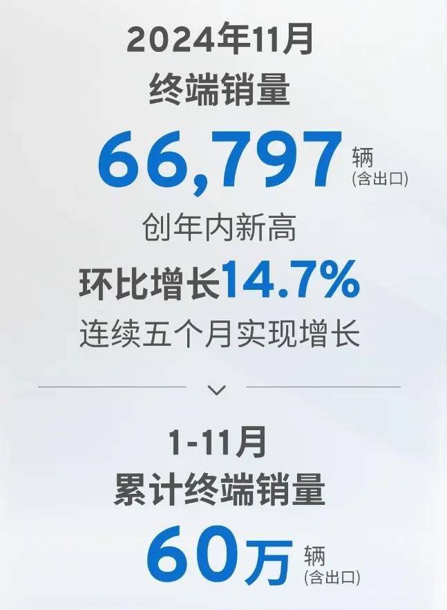 上汽通用在11月份交出的成績單是66797輛,環比增長14.7%,創年內新高。1-11月累計終端銷量60萬輛,新能源車型更是合計賣出97056輛,同比增長幅度高達77.4%,再次用穩定的實績證明了自身實力。
