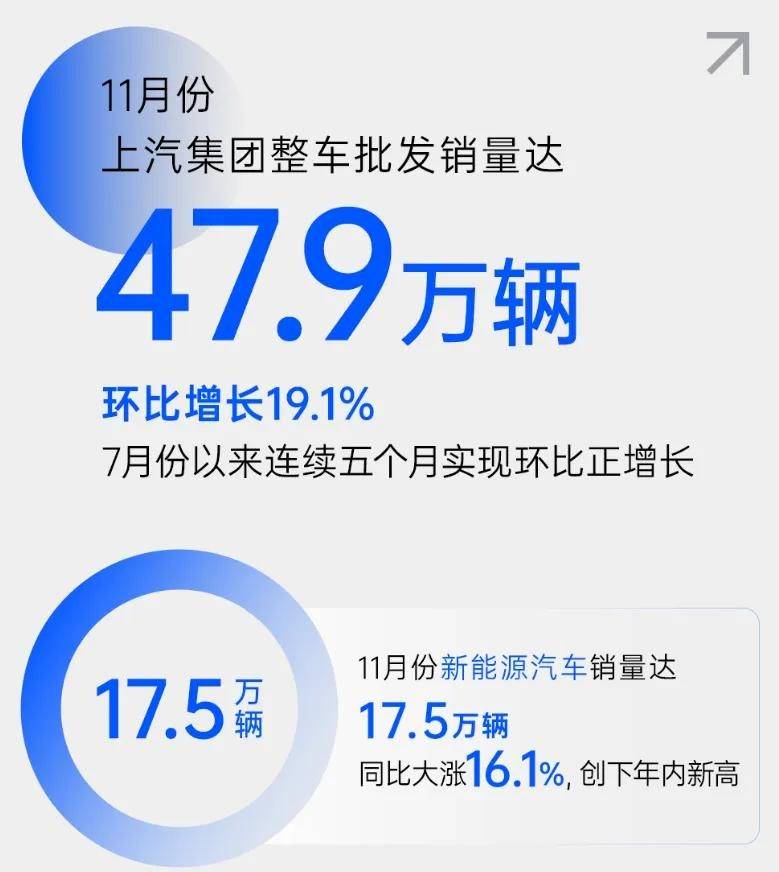 由此可見,盡管合資品牌在華的表現深受自主新能源車的沖擊,但是部分頭部品牌依然能憑借旗下車型出色的產品力和到位的服務,獲得大量消費者認可。其中上汽大眾更是通過積極轉型電動化,憑借ID.家族的熱銷,逐漸在國內新能源車市場站穩了腳跟。得益于上汽大眾和上汽通用旗下車型走量,今年11月份上汽集團的銷量也達到47.9萬輛,環比增長19.1%,實現月度五連漲。
