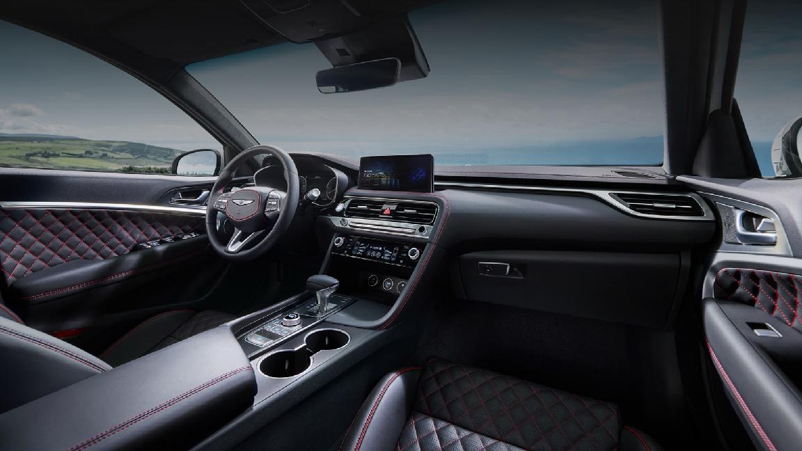 內飾設計方面,捷尼賽思G70獵裝版收起了外觀上的奔放,使用了相對傳統的設計風格,中控臺很難讓人第一時間想到是最新款的車型。略微向駕駛者傾斜的中控臺,更注重駕駛者的體驗,實用至上的用戶,會喜歡結合實體按鍵和觸控屏幕的設計。