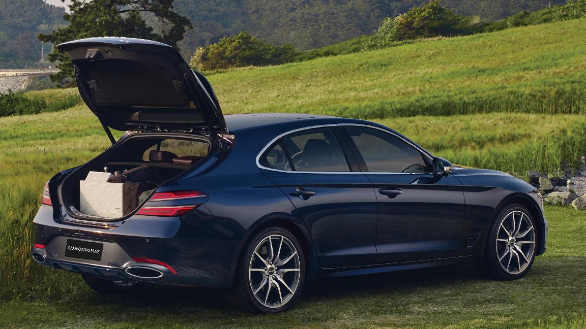 側面則是G70獵裝版最精彩的部分,與常規的旅行車相比,獵裝版更具流線型,尾部往下傾斜的幅度更大,讓它呈現出更強的動感。