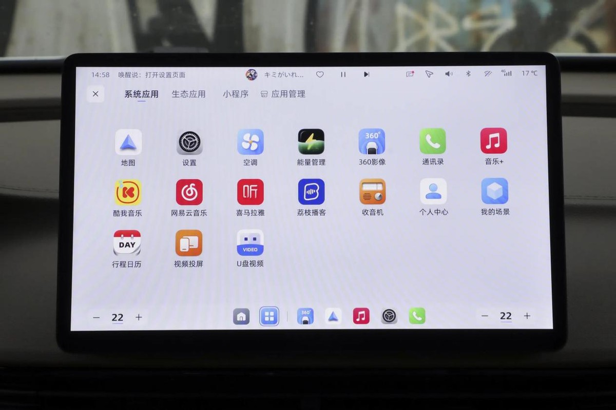 聊完了內飾,緊接著咱們來看看榮威iMAX8 DMH的內部配置,智能座艙部分,榮威iMAX8 DMH配備了全新斑馬智行車機系統,支持手機APP控車、OTA遠程升級、語音控車等功能,并且還支持大量的車載APP,包括網易云音樂、嗶哩嗶哩等,整體的娛樂性不錯,比如咱們帶孩子跑長途,小朋友就可以看一看視頻,打發時間;