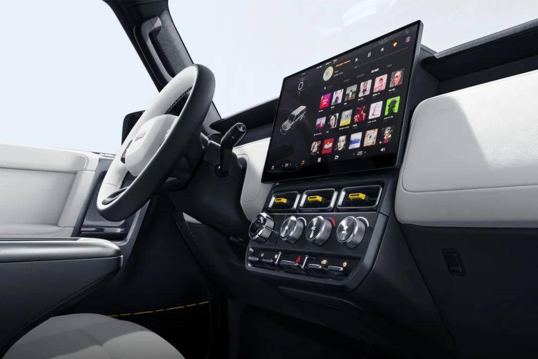 包括在內(nèi)飾設(shè)計上,iCAR V23依舊是科技+復(fù)古的融合,前排除了有15.4英寸中控大屏外,還有連排設(shè)計的旋鈕,同樣突出了越野范兒。動力和續(xù)航上,從iCAR V23的預(yù)售信息來看,新車有401兩驅(qū)和501四驅(qū)高階版。