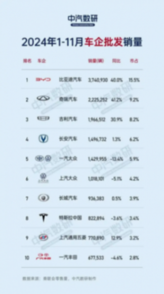 比亞迪、奇瑞、吉利、長(zhǎng)安、長(zhǎng)城是中國(guó)品牌汽車的前5強(qiáng),今年前11個(gè)月均實(shí)現(xiàn)了同比增長(zhǎng)。