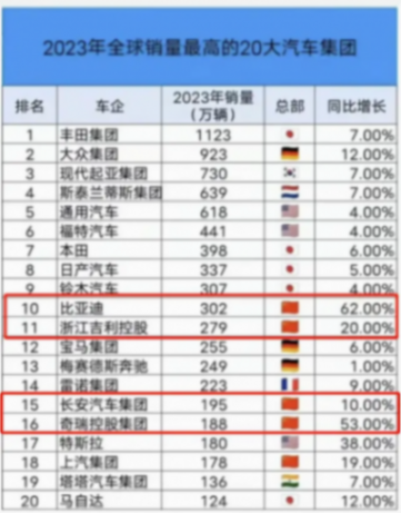 自2003年起,全球領(lǐng)先的五大汽車制造集團(tuán)均達(dá)到了年銷量超過(guò)600萬(wàn)輛的顯著水平,這意味著它們每月的銷售量都超過(guò)了50萬(wàn)輛。即便是在去年躋身全球汽車銷量前十的比亞迪,其排名也在這些巨頭之后。
