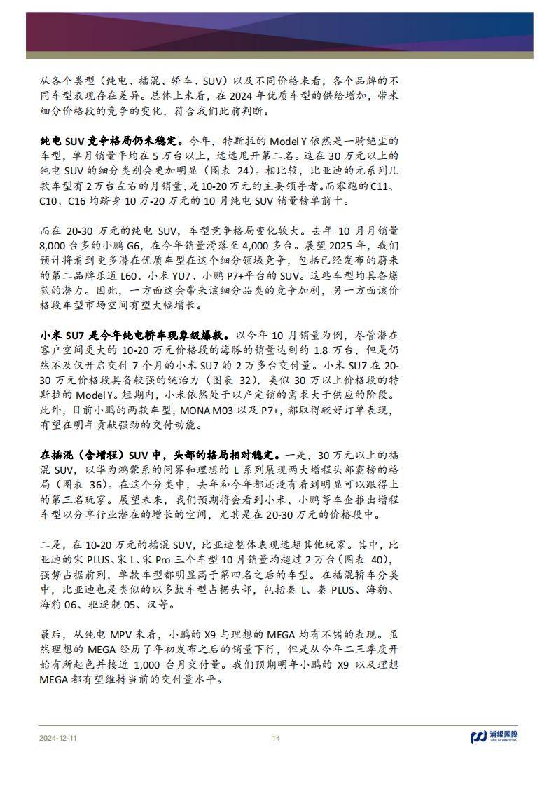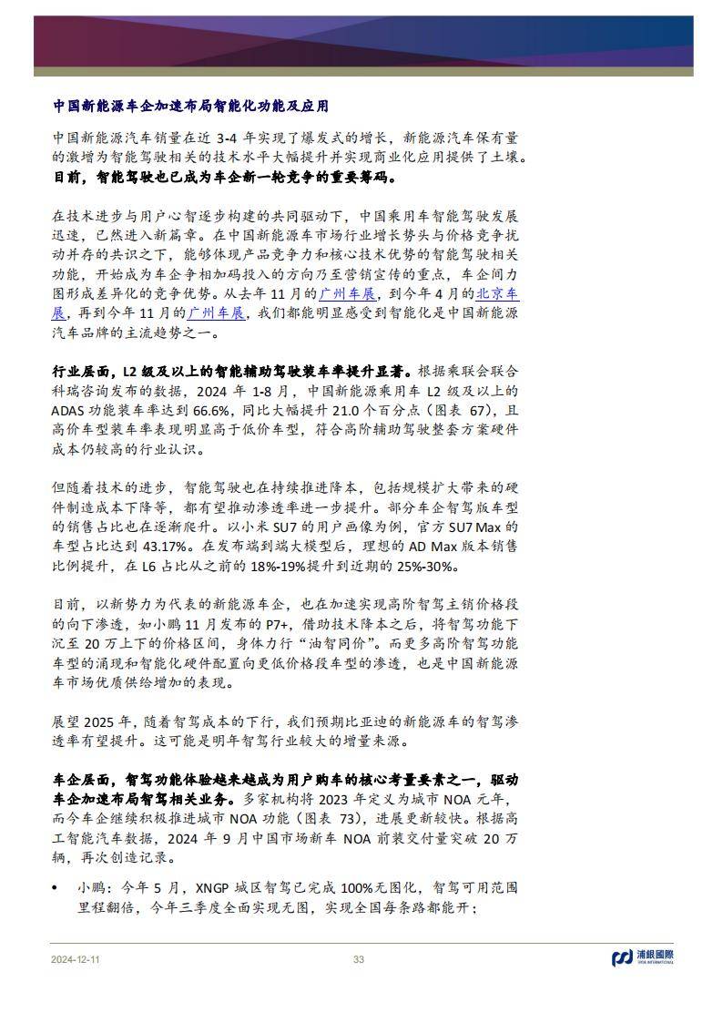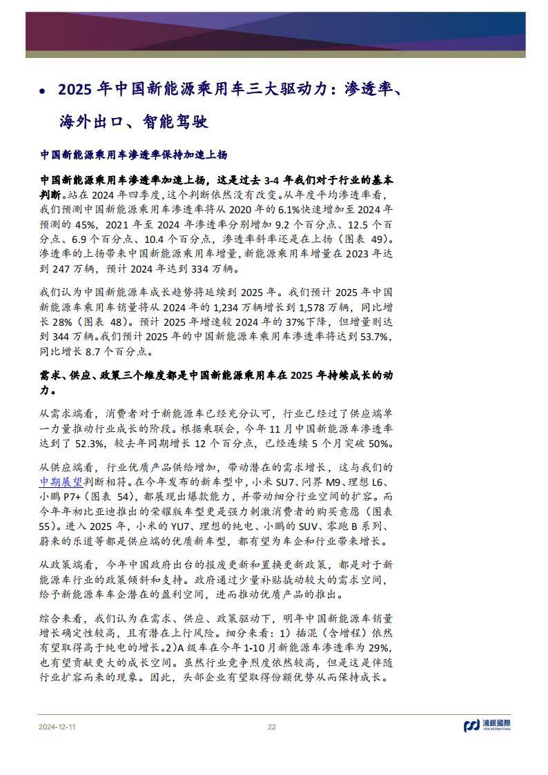 報告詳細分析了新能源汽車行業的未來趨勢,包括滲透率提升、海外出口與智能駕駛的發展。預計2025年中國新能源乘用車銷量將達1578萬輛,滲透率達到53.7%。報告指出,小米、蔚來等新勢力車企正通過推出爆款車型擴大市場份額,而比亞迪繼續保持領先地位。海外市場方面,中國新能源車在歐洲和東南亞市場的認可度持續提升,為出口帶來新增長點。此外,智能駕駛技術的迭代升級,包括激光雷達和高級自動駕駛功能的普及,也將成為行業的主要推動力。報告同時警示,行業競爭的加劇和政策環境的不確定性可能帶來風險。
