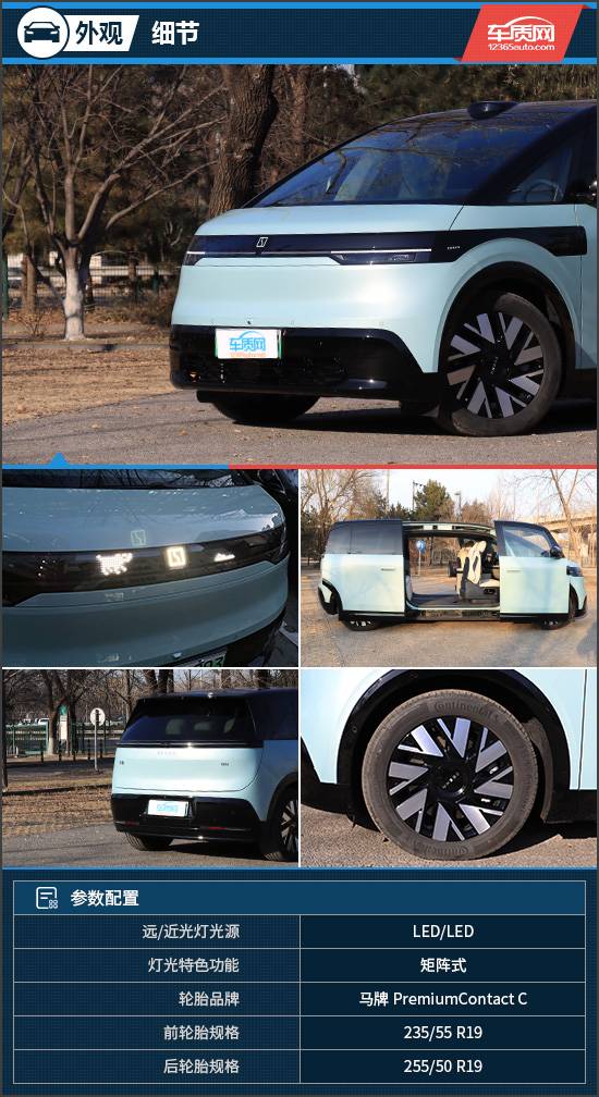 輪圈方面,評測車配備了多輻雙色輪圈,能夠?yàn)閭?cè)面增添不少運(yùn)動氣息。與之匹配的輪胎來自馬牌PremiumContact C系列,是一款主打靜音以及駕乘舒適性的輪胎,具體規(guī)格為前235/55 R19,后255/50 R19。