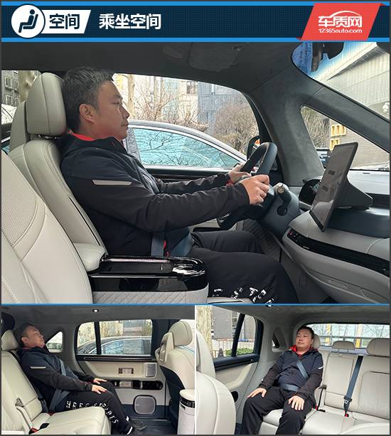 乘坐空間方面,得益于3008mm的長軸距,實(shí)測身高175cm的體驗(yàn)者無論在前排還是第二排,都有著充裕的乘坐空間。尤其是第二排,腿部有超過半臂的距離。此外,評測車的后排座椅還配備了加熱、通風(fēng)、按摩以及電動腿托功能,再加上后排座椅電動調(diào)節(jié),乘坐舒適性不輸豪華MPV。