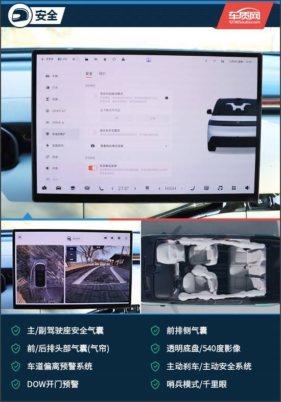 安全配置方面,評測車搭載了豐富的主/被動安全配置。像是主/副駕駛座安全氣囊、前/后排頭部氣囊(氣簾)、車道偏離預(yù)警系統(tǒng)、DOW開門預(yù)警、哨兵模式/千里眼等主/被動安全配置均有配備,可以有效提升行車穩(wěn)定性,在同級中占有一定的優(yōu)勢。