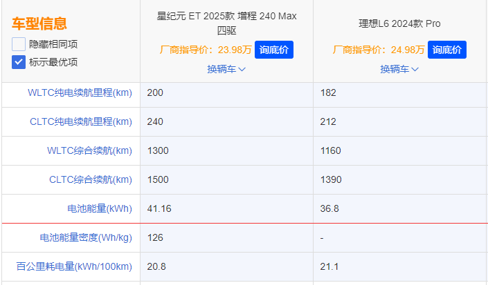 從續航的對比來看,星紀元ET增程四驅比理想L6多出了110km,這續航孰強孰弱,大家應該一目了然了吧?