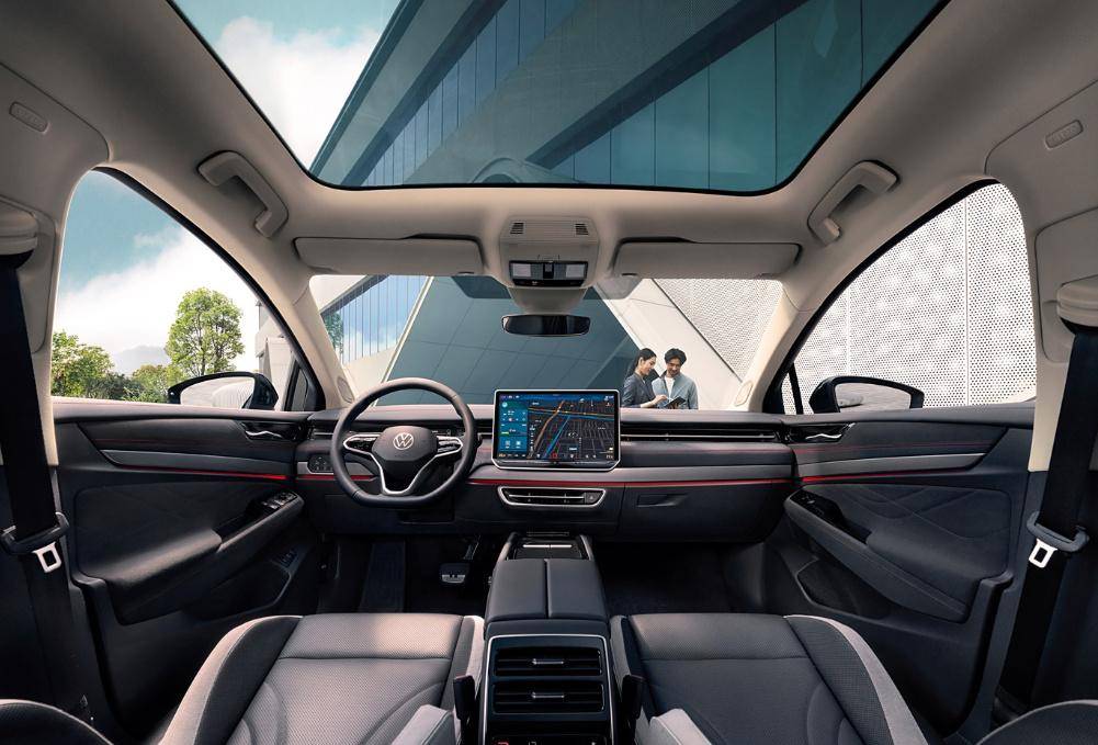 內飾方面,ID.7 VIZZION配備了超大尺寸SkyView智能光感天幕,可以隔絕83%以上熱量和99.9%紫外線,既能拓寬視野,還便于日常防曬。全系車窗及前風擋采用雙層夾膠隔音玻璃,且全系使用自修復靜音輪胎,可營造出圖書館級的靜音空間,除此之外,ID.7 VIZZION還搭載了大眾全新ID. OS 2.0車載智能系統、15英寸智能2K懸浮屏及Travel Assist 3.0智能輔助,更全系標配了70英寸AR HUD等主流智能化裝備,實現了堪比主流新勢力的智能化交互體驗。接近0醛0苯的母嬰級座艙,也保障了車內環境安全,提升了全家人的駕乘體驗感。
