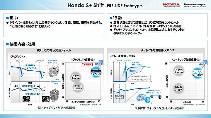 本田原廠于近期舉辦關于 e:HEV 油電科技的發布會,重點就在于發表新世代的 e:HEV 動力,包括針對系統中的引擎、馬達和其他控制元件進行改進,同時一大亮點更在于推出了名為「S+ Shift」的模擬換檔功能,主要就是帶給駕駛行車時更有趣的體驗,其能精確控制引擎轉速,在加速和減速時實現直接的驅動反應和敏捷的模擬換檔,而這套 S+ Shift 駕駛新功能將會先配置在 Prelude 身上,后續新世代的 e:HEV 車型也都會擁有。此外,Prelude 也確認會在 2025 年于日本上市,北美地區則是 2025 年底左右,至于歐洲開賣時間落在 2026 年初。