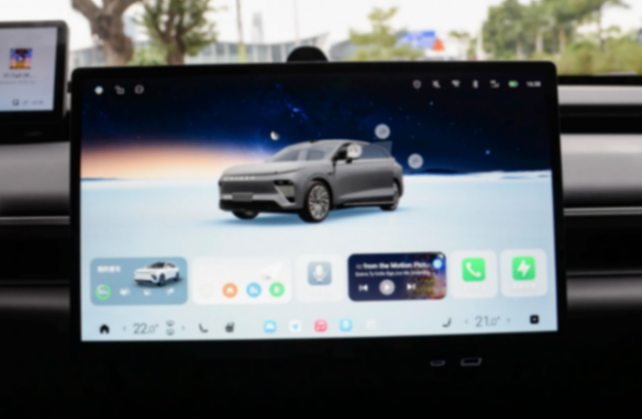 進入車內,可以看出車內設計也是比較簡潔,你幾乎找不到實體按鍵的存在,體現出了未來感,并且整體的布局很合理,氛圍也很到位。方向盤的樣式十分個性,采用上下平底的雙輻設計,左右兩側的功能區域各有一個滾輪按鍵,控制功能的集成度很高,但初次上手使用需要適應一下。該車搭載高通驍龍 8295P 芯片,配備 AI 用車助手、15.6 英寸懸浮式中控屏以及 10.25 英寸懸浮式儀表盤,新增車機分屏、露營模式等功能,還搭載星動吧臺、可以0-100%無級調控的電動遮陽簾、智能電動手套箱,Lion Melody 大師級音響新增立式揚聲器“星光散射體”。
