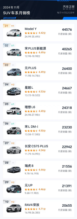 11月份SUV銷量排行榜前十名出爐了,燃油車還有4款,其中,三款車都是自主品牌車型,表現(xiàn)非常強(qiáng)勢(shì),我們一起來(lái)看看吧!