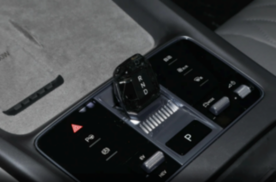 除了精致的水晶換擋桿之外,還可以在該區域看到一些常用功能的操作按鈕,比如一鍵啟動、電子手剎、自動駐車、駕駛模式切換、空調開關等等。