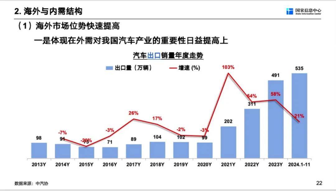 位勢提高反映在我們在全球汽車市場影響力也開始了,2023年我國出口量躍居到全球第一。