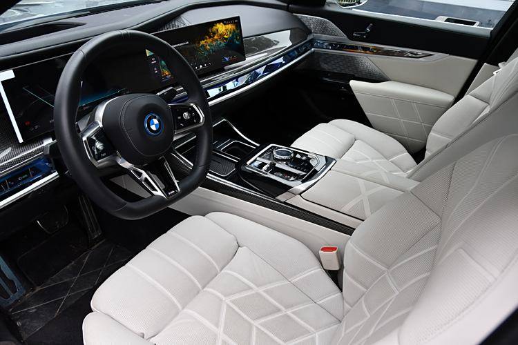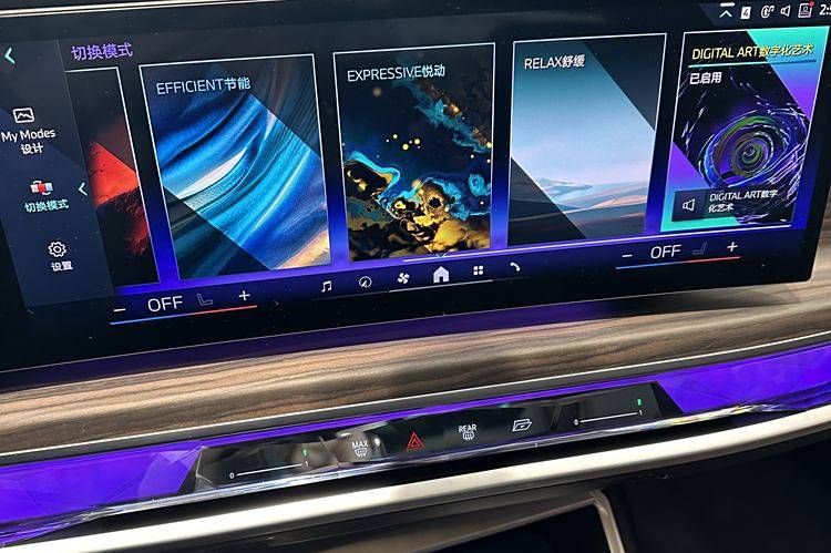 內飾部分,全新寶馬7系設計上進行了創新,除了顯而易見的帶狀聯屏外,富有科技感的水晶裝飾內飾氛圍燈以及簡化后的觸屏都是亮點。這臺車搭載12.3英寸+14.9英寸雙聯屏設計內置iDrive 8操作系統,無論是顯示效果、操作的便利性以及功能的擴展性都不需要擔心,在主題顯示方面也非常豐富。