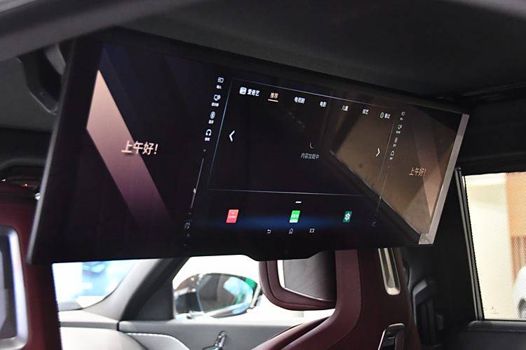 來到后排,一場視聽盛宴正等待你的到來。31英寸8K分辨率的巨幕置于車頂,只需一鍵便會翻折開來橫置于座艙中央,宛如移動的影院。這塊巨幕不僅支持32:9模式播放內容,而且還引入了多款應用,追劇、看電影、聽音樂都不在話下。