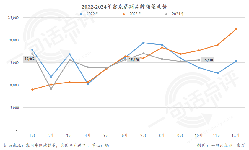 今年初,在同期較低的基礎上,雷克薩斯實現不錯的增長,使得今年前10月總銷量也同比增長6.8%至14.9萬輛,但其實8月以來已連續數月走跌。因去年11月和12月的銷量分別高達1.9萬輛和2.2萬輛,今年最后兩個月雷克薩斯極有可能還會繼續大幅下跌,最后全年能否繼續保持正增長仍然存在很大的不確定性。