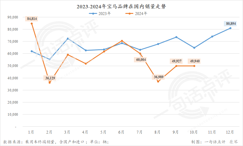 可惜的是,即便如此9月和10月寶馬的銷量還是只勉強爬坡至5.0萬輛,同比依舊分別下跌32.1%和23.0%。