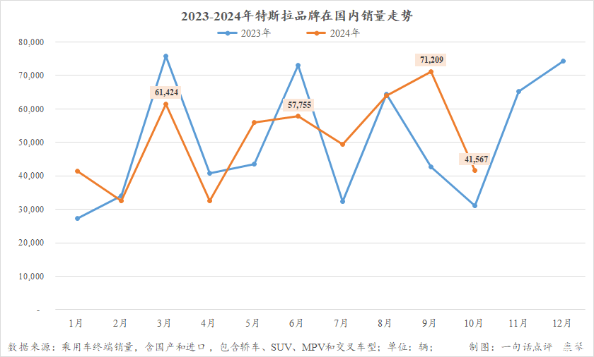 數據顯示,今年上半年特斯拉在國內僅1月和5月的同比為正,依靠“5年0息”政策的推出,下半年情況才逐漸好轉,7月-10月只有8月微跌0.7%。所以,今年前10月特斯拉的累計同比增幅為9.3%,遠遠低于豪華市場里新能源高端品牌們的平均值。