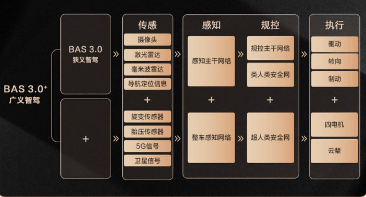 目前,比亞迪天神之眼智能駕駛輔助系統(tǒng)已迭代至BAS 3.0+超人類駕駛輔助。依托中國最大車云數(shù)據(jù)庫,比亞迪擁有行業(yè)領(lǐng)先的端到端大模型和超強的迭代能力,支撐了比亞迪高階智駕的快速迭代、快速更新。BAS 3.0+系統(tǒng)全面賦能仰望U8智駕領(lǐng)航,打通了仰望U8易四方、云輦系統(tǒng)的感知、控制、執(zhí)行,開啟了整車智能新階段,可以為用戶帶來更加智能和高效的駕駛體驗。