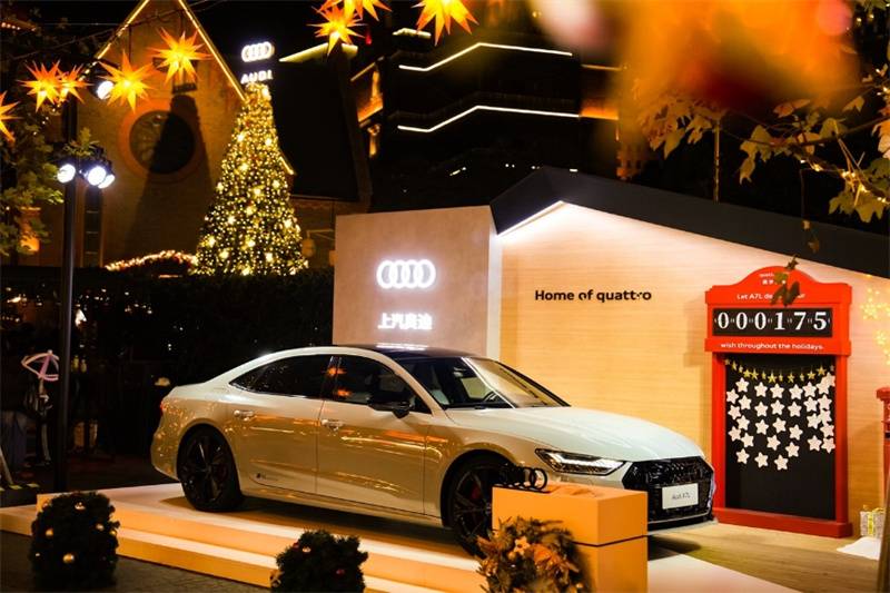夜幕降臨,華燈初上,街區的每一顆星辰都承載著希望的光芒。上汽奧迪A7L RS套件競速版停靠在“quattro小屋”的前方,豪華前衛的外觀,搭配星光熠熠的節日背景,呈現出宛如藝術品般的觀感,成為圣誕集市最大的亮點。