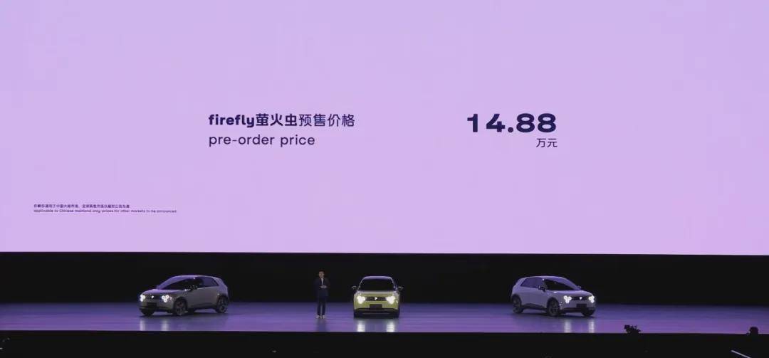 那一晚,蔚來沒有把最美好的光打在螢火蟲身上,我們甚至還沒來得及看清上臺這款螢火蟲紫色車身的真正色調,就在李斌說,“開啟中國區預售……售價14.88萬元……”時又一次被震驚到了。