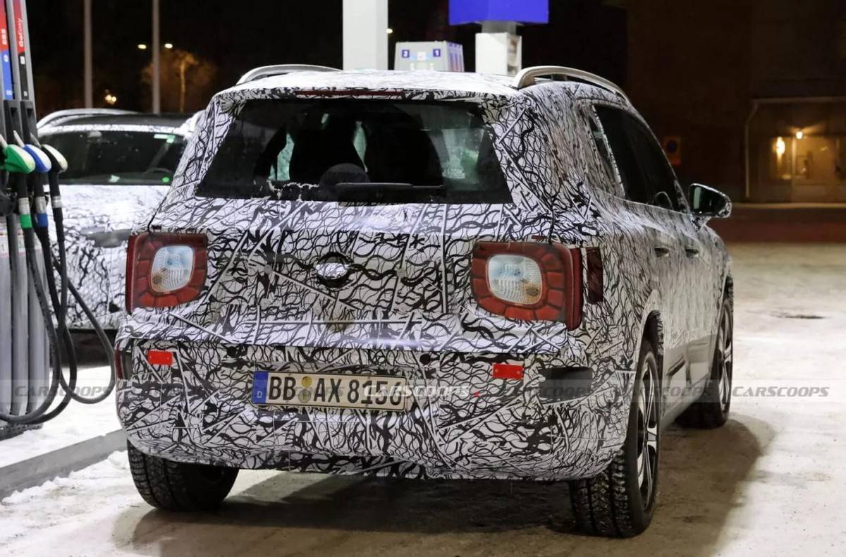 車尾部分,這輛全新GLB就采用了較厚的諜照涂裝,包括這個尾燈組造型都還是用的Smart的尾燈,所以對于車尾的具體造型和樣式,我們還是得再等上一等。
