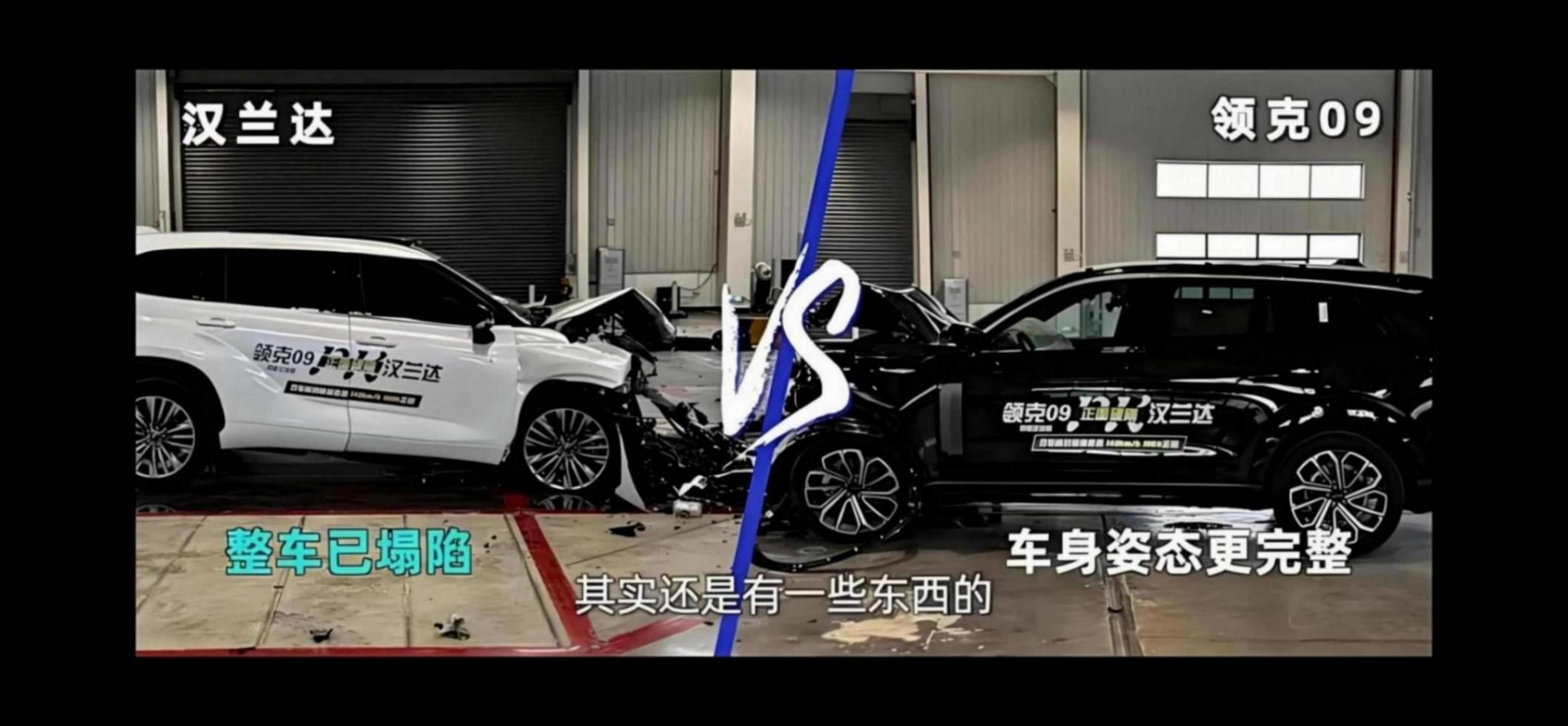 了解領克09的朋友都知道,這款車是基于全球安全標準SPA架構打造而來,經常被網友稱為“國產沃爾沃”。那說起來沃爾沃,大家最有印象的就是安全,領克09也繼承了沃爾沃 SPA平臺的高安全性,在與漢蘭達對撞測試中,領克09與漢蘭達進行了時速70km/h的正面對撞,相對速度達到了140km/h。從撞擊測試結果來看,兩車的車頭都出現了明顯的潰縮,整體的A柱以及乘員艙都沒有明顯的變形,但漢蘭達的前機艙懸架位置受損嚴重,車身已經出現明顯的塌陷,而領克09這里車身姿態并沒有發生明顯的變化。