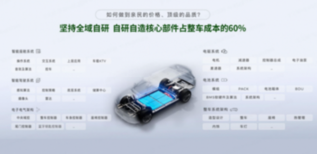 要知道在很多消費者的認知中,創(chuàng)業(yè)至今的零跑并不是一家非常有話題度的新勢力,企業(yè)整體風格更像是一個“情緒十分穩(wěn)定的人”,這或許跟創(chuàng)始人的工程師背景有關(guān)。因此,從零跑成立第一天起開始,這家車企就明確要堅持全域自研,技術(shù)立企。如今,零跑的全域自研已涵蓋電子電氣架構(gòu)、智能座艙、智能駕駛、智能電池、智能電驅(qū)以及整車架構(gòu)六大關(guān)鍵技術(shù)領(lǐng)域,占整車成本多達60%的零部件,都可以實現(xiàn)自研自造。