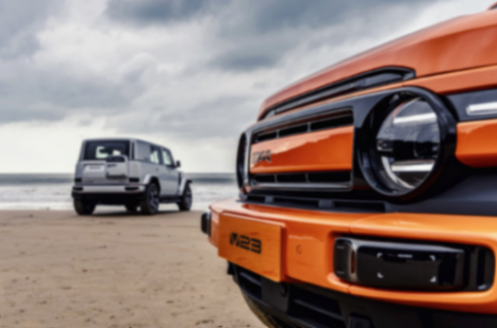 新車車側采用了大量直線,使側面觀感有著很強的力量感,所采用的外擴式輪眉設計有效地增強了車輛的越野屬性,值得一提的是,雖然iCAR V23采用的門把手看似為隱藏式門把手,但其實際為機械式開關,在美觀度與安全性方面做到了二者兼得。