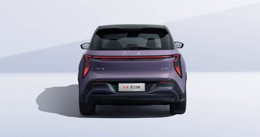 天工08車尾部分造型較為敦實,車頂末端設置大尺寸擾流板,其內部隱藏細長條的高位剎車燈。尾燈組則為時下流行的貫穿式設計,主題部分造型與前大燈組呼應,同時底部還設置有夸張的擴散器裝飾,進一步提升了車身的車身設計的運動及科技氣息。
