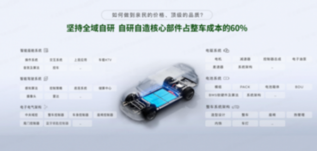 零跑也學到了當下新能源“扛把子”比亞迪的精髓——比亞迪造車,率先掀起“油電同價”的狂潮,靠的就是垂直整合,堅守自研。零跑目前已經實現整車成本70%的自研自造能力。除電芯、內外飾外購,底盤、汽車電子電器為自研+外包生產外,其它所有零部件均為自研自產,成為現在國內造車新勢力中具備全域自研能力且垂直整合度最高的智能電動車企。