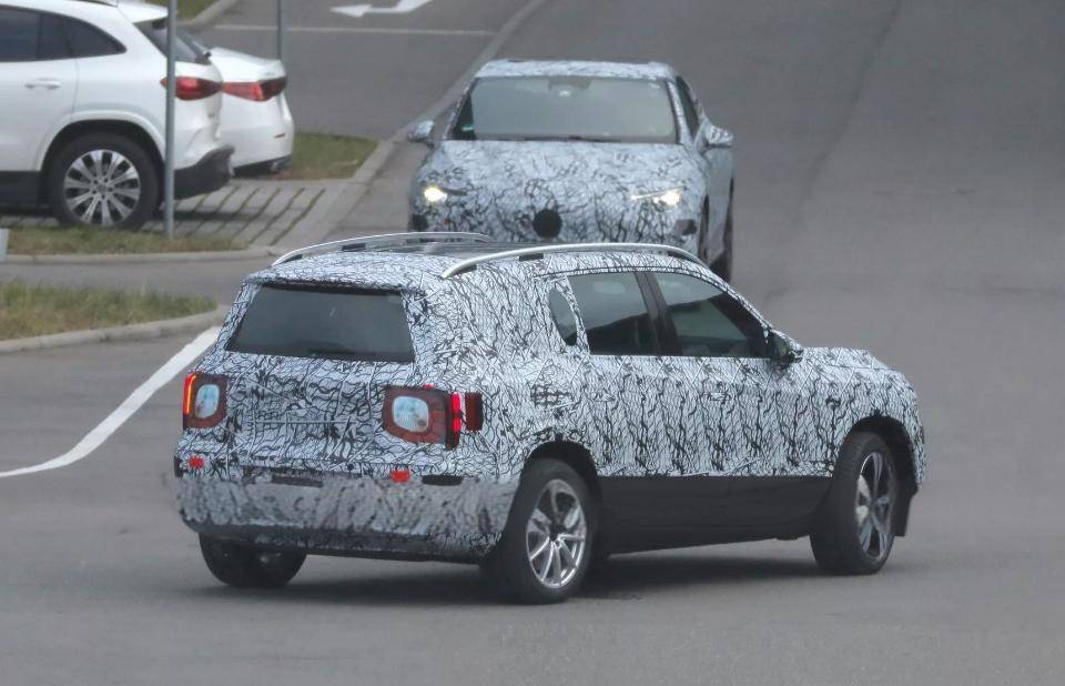 來到側(cè)面,全新GLB純電版同樣方正,可以看到C柱與D柱位置,相比現(xiàn)款要略微長一些,由此可見,新車大概率軸距更具優(yōu)勢,能夠為后排乘客提供更為寬敞的空間。另外,新車在車尾部分同樣向尾燈延伸,增強了整車的統(tǒng)一感。全新隱藏式的門把手和大尺寸輪轂不僅提升了車輛的運動感,車身比例也會協(xié)調(diào)一些。