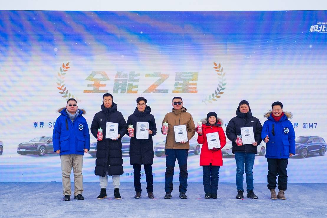 活動現場,中汽院智能網聯科技有限公司副總經理潘登、中汽院新能源科技有限公司副總經理歐陽為同時獲得“極北寒測智能安全之星”和“極北寒測高效節能之星”的極氪007,享界S9,小米SU7,阿維塔07,問界新M7,問界M9六款車型授予“極北寒測全能之星”榮譽稱號。極越01、小鵬G9通過全部能效測試,獲得“極北寒測高效節能之星”榮譽稱號。