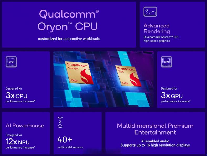 高通驍龍8155和8295是目前智能座艙的兩個主要方案,一個主打中端市場,一個主打高端市場。手機端的驍龍8至尊版CPU早已開賣,座艙端的至尊版芯片將在明年裝車。主要有幾個亮點,首先是性能,相比前作8295有3倍的提升;其次是AI性能有12倍的提升,最多可支持16塊車載屏幕;第三是“艙駕一體”,未來座艙和智駕兩塊系統不再是獨立的,芯片算力增強后,會將其融合,讓算力更好地被使用。