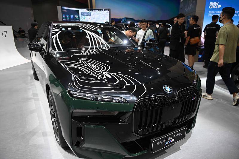 這是2024年11月15日拍攝的寶馬純電動汽車i7。當日,第二十二屆廣州國際汽車展覽會在中國進出口商品交易會展館開幕,展會規模達22萬平方米,其中新能源車備受關注。新華社記者鄧華攝