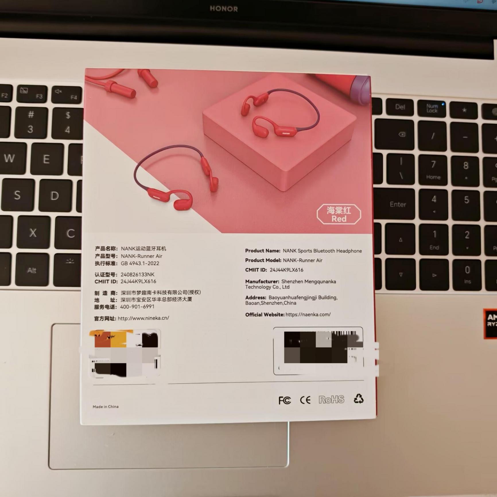 南卡 Runner Air 耳機的包裝非常簡潔,大紅的包裝非常的喜慶,給即將帶來的新年增添了喜慶色彩。從正面可以看到耳機的主要外觀以及產(chǎn)品的logo。