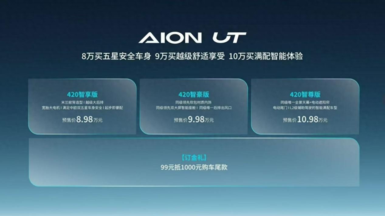 值得一提的是,目前預(yù)訂新車(chē)還能享受99元訂金抵扣1000元購(gòu)車(chē)尾款的優(yōu)惠,即便以目前這個(gè)價(jià)格,加上埃安UT的產(chǎn)品力就非常能打了,甚至可以說(shuō)是斷層式領(lǐng)先同級(jí)產(chǎn)品,如果正式上市還能給到驚喜,那么10萬(wàn)左右的A級(jí)電動(dòng)車(chē)市場(chǎng)真要被埃安UT給清場(chǎng)了,不信咱們就拭目以待。